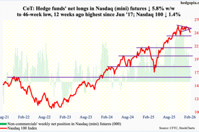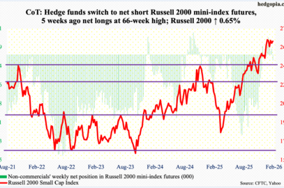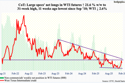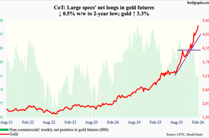 Following futures positions of non-commercials are as of Feb 10, 2026. 10-year note: Currently net short 813k, up 83.6k. Minutes of the January 27-28 FOMC meeting will be out Wednesday. The fed funds... READ MORE
