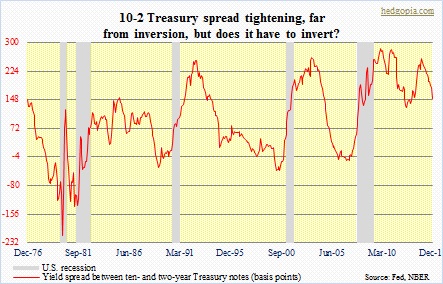 Despite escape-velocity meme, yield curve continues to tighten Message of belly/long end of curve to short-end: be careful what you ask for Financials diverge from 10-2 spread, perhaps setting up as shorting opportunity next month One of the contrarian themes … Continued