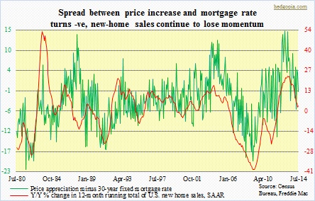 The piece yesterday on U.S. housing was based on June’s numbers.  New-home sales data came out yesterday, and it was anything but encouraging.  Year-over-year, sales (seasonally adjusted annual rate) rose 12.2 percent but fell 2.4 percent month-over-month.  The latter helps … Continued