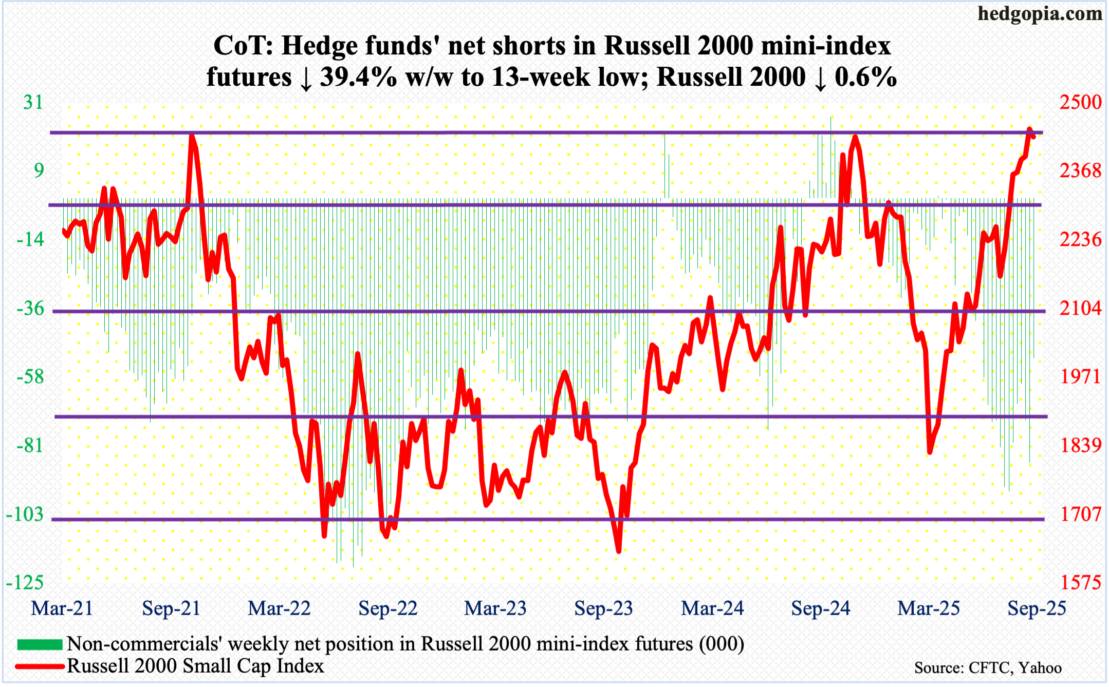 Following futures positions of non-commercials are as of Sep 16, 2025. 10-year note: Currently net short 819.3k, down 38.7k. As expected, the Federal Reserve lowered the fed funds rate by 25 basis points to a range of 400 basis points … Continued