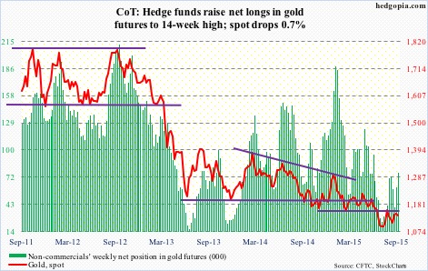 The following are futures positions of non-commercials as of September 29, 2015. Change is week-over-week.