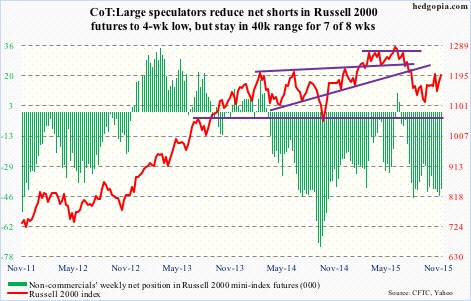 Non-commercials continue not to buy the small-cap story.