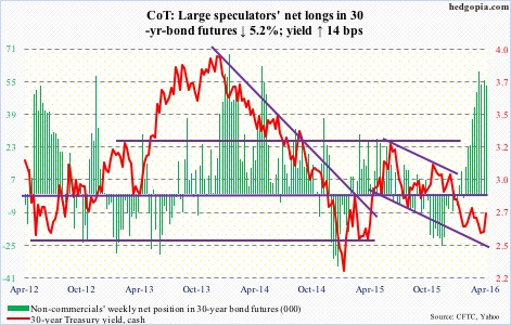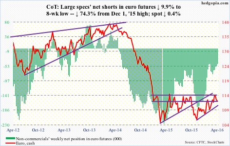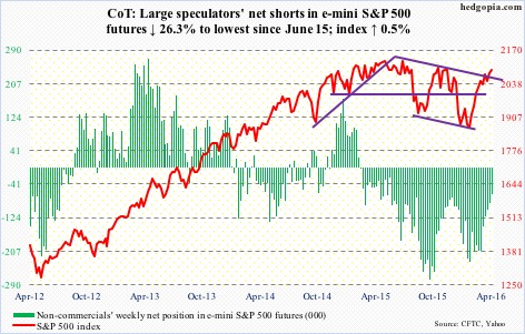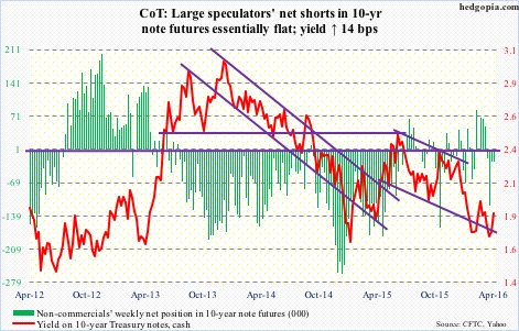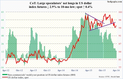 The following are futures positions of non-commercials as of April 19, 2016.  Change is week-over-week.