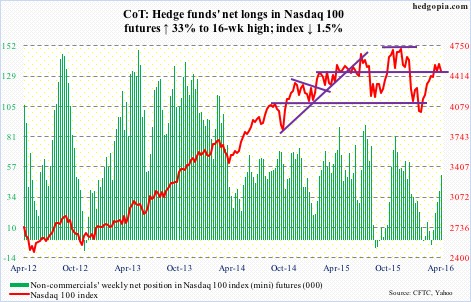 Currently net long 50.5k, up 12.4k.NDX