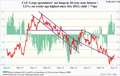The recent uptick in rate-hike talk is yet to convince non-commercials to begin to aggressively add to net longs.