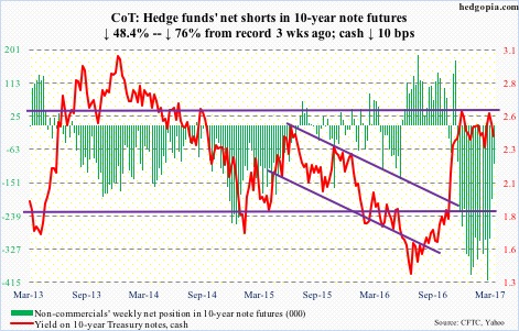 10-year note: Currently net short 100.4k, down 94k.TNX