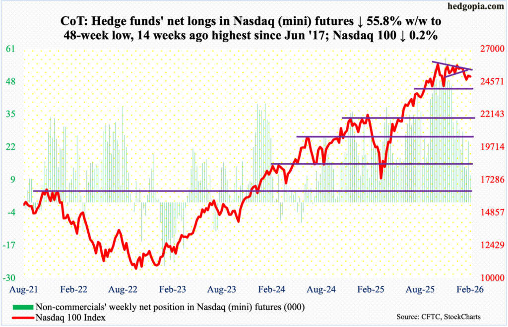 Nasdaq (mini): Currently net long 10.8k, down 13.6k.
