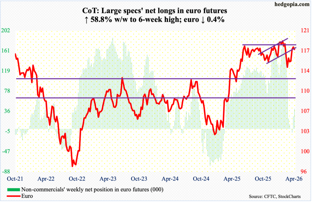 Following futures positions of non-commercials are as of April 21, 2026.
