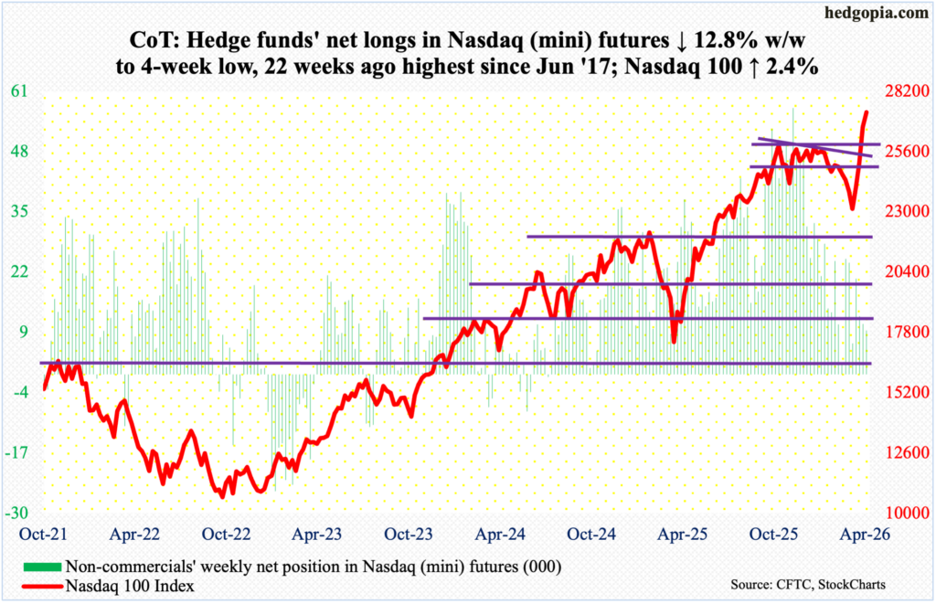 Nasdaq (mini): Currently net long 9.4k, down 1.4k.