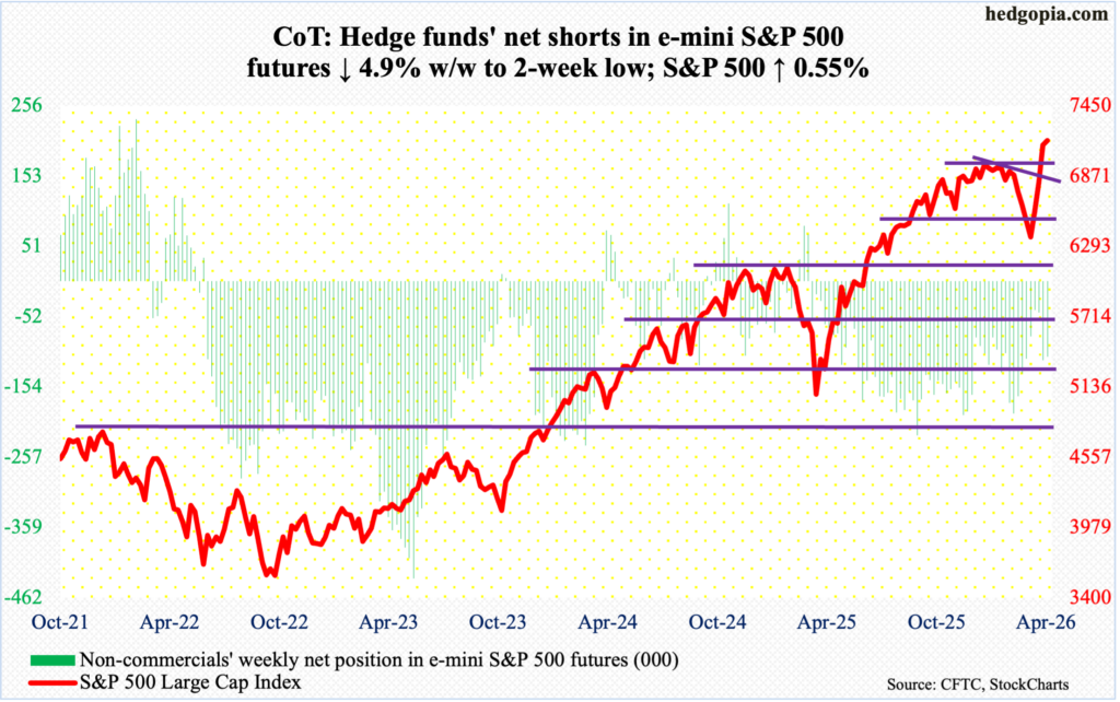 E-mini S&P 500: Currently net short 110.1k, down 5.7k.