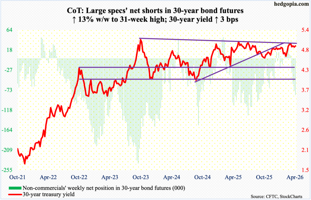 30-year bond: Currently net short 83.8k, up 9.7k.