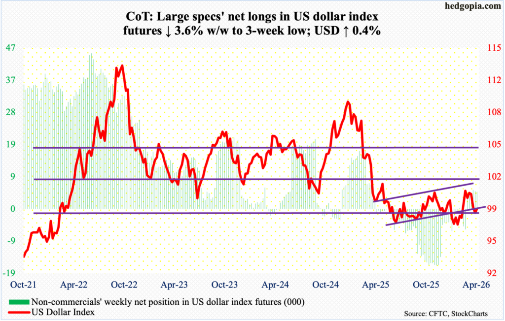 US Dollar Index: Currently net long 5k, down 187.