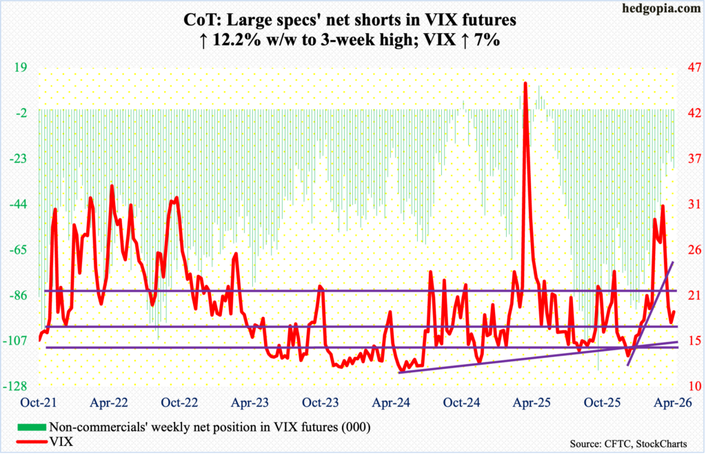VIX: Currently net short 27.3k, up 3k.