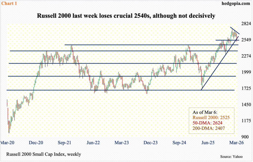 Small-cap bulls were unwilling last Friday to pounce on February’s dismal jobs report, rather sold off on the news. The Russell 2000 declined 4.1 percent for the week, losing 2.3 percent on Friday alone, closing at 2525.