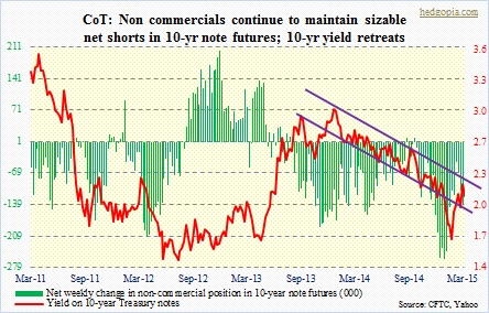 The following are futures positions of non-commercials as of March 10. Change is week-over-week.