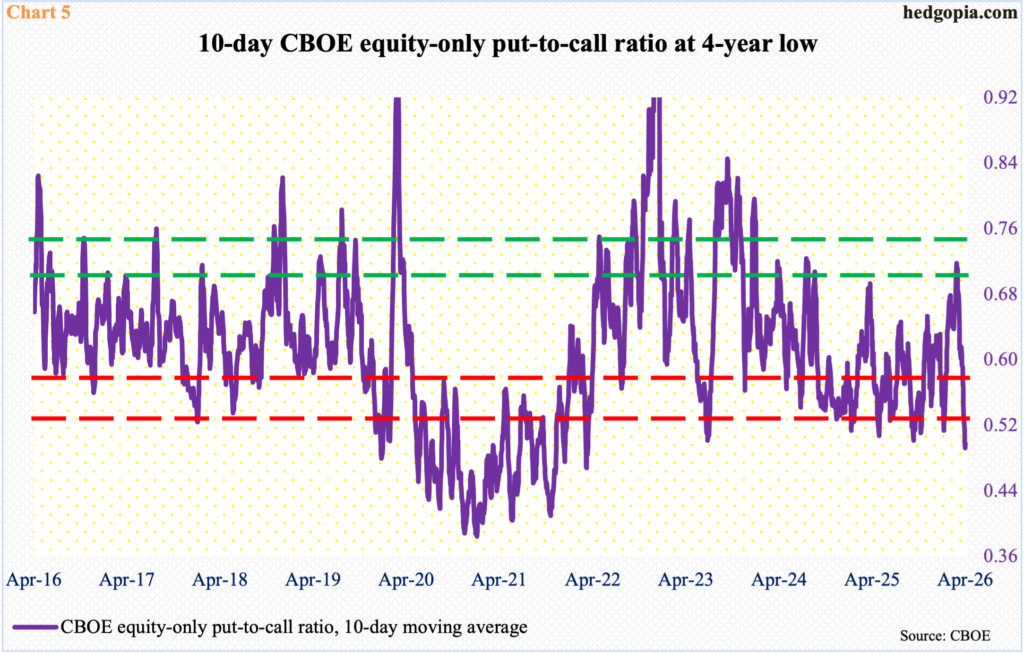 Last Friday, the 10-day moving average of the ratio finished at 0.498. This was the third consecutive session of sub-0.50 reading, with Wednesday’s 0.493 at a four-year low (Chart 5).