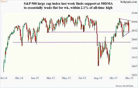 After Friday’s action, it is bulls’ ball to lose. The S&P 500 in particular has carved out a pennant (Chart 1), which more often than not tends to be a continuation pattern. Let us see if they can force a breakout.