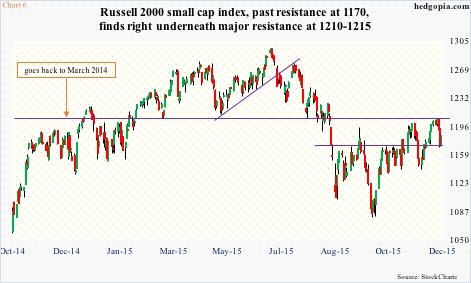 Two weeks ago, small-cap bulls finally took care of the 1170 resistance, followed by a rejection at the March 2014 resistance. The subsequent sell-off had buyers one again show up at 1170 last Thursday. The positive in all this? The 1170 level did not give way. The negative? That it was getting tested again even as 1210-1215 is acting like it is invincible.