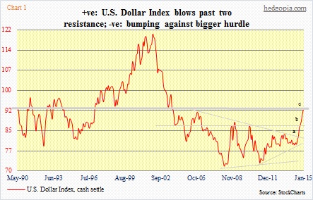 Technically strong dollar bumping against two-decade-long resistance Trend-following hedge funds’ net longs in dollar index futures highest ever To watch out for: rise in odds of no rate hikes in U.S. and ECB QE disappointment Not a single day goes … Continued