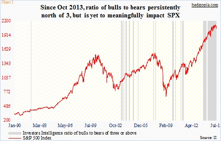 Of late, equity bulls have pulled in their horns. Just a tad. Will they be rewarded for their steadfast bullishness in the near-term? Investors Intelligence’s survey of bulls this week registered at 44.8 percent. This was the sixth sub-50 reading … Continued