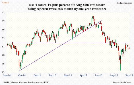 SMH, the Market Vectors Semiconductor ETF, does not act well. What might be the message for semis in particular and stocks in general? Before we try to draw an out-and-out negative conclusion from this, let us remember that between the … Continued