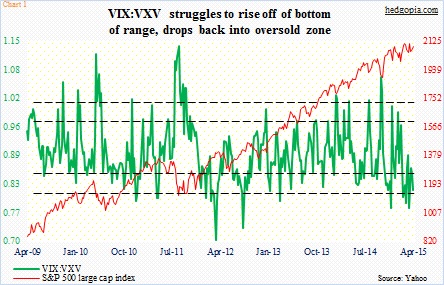 Both bulls and bears holding on to turf; S&P 500 remains range-bound VIX:VXV pokes head out of oversold zone but unable to make further progress Volatility of volatility jumped to highest four months ago; in no-man’s land currently Bulls and … Continued