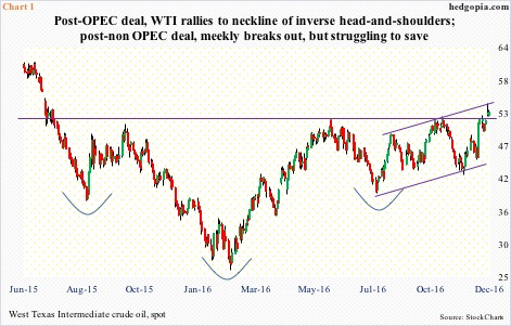 Over the weekend, non-OPEC producers agreed to cut crude output by 558,000 barrels per day, of which Russia would reduce by 300,000 b/d. This followed OPEC’s November 30 decision to cut output by 1.2 million b/d. The deal goes into … Continued
