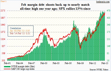 Margin debt jumps $20bn in Feb to nearly match all-time high a year ago Interesting, tight correlation between margin debt and U.S. banks’ C&I loans Rise in inventories-to-sales ratio probably suggests imminent slowdown in C&I loans NYSE margin debt shot … Continued