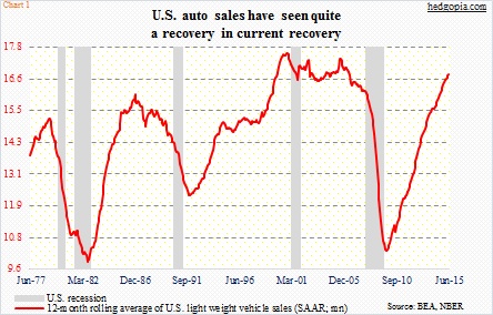 June U.S. auto sales 17.1mn units, preceded by cycle high of 17.7mn in May Auto loans nearing $1tn; sharp rise since 3Q10; non-revolving consumer credit $2.5tn Potential problems in autos: extension of average maturity and rise in average amount financed … Continued