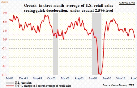 The U.S. economy continues to churn out mixed messages. The retail sales number on Wednesday was an outright dud. Sales in April were flat month-over-month, against expectations for a 0.2-percent gain. With that, sales are now down to flat in … Continued