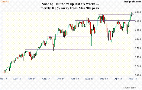 U.S. tech stocks have come to life.  The Nasdaq composite (5213.14) is within spitting distance of its all-time high 5231.94 of July last year.  On a weekly closing basis, last week was a new record. The Nasdaq 100 index (4784.74) … Continued