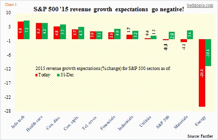 Sell-side S&P 500 revenue growth estimates for 2015 goes negative High correlation between SPX revenues and U.S. nominal GDP 2015 U.S. GDP estimates in 3% range way too optimistic? The 443 S&P 500 companies that have reported 4Q were tracking … Continued