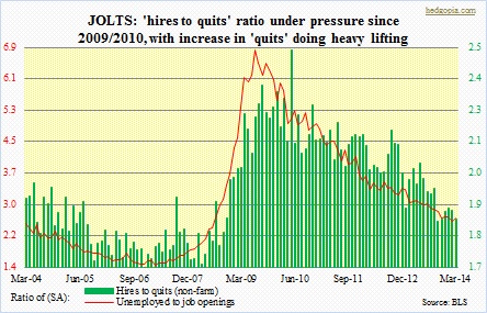 Recent sideways/down action in ‘job openings’ probably suggests weakness in employment ahead