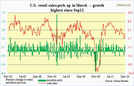 There was a lot of excitement early this week after U.S. retail-sales data were released. At 1.14 percent, month/month change in retail and food services was the highest since September 2012. ‘Motor vehicles & parts dealers’ helped a great deal … Continued