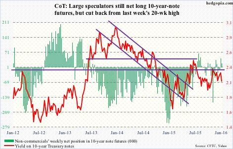 The following are futures positions of non-commercials as of January 5, 2016. Change is week-over-week. 10-year note: The World Bank, warning of an increase in risks to the global economy, expects growth this year to come in at 2.9 percent, … Continued