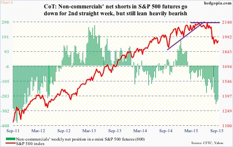 As far as the S&P 500 is concerned, there is a similar message coming out of the futures market. As of August 25, a day after the index made an intra-day low of 1867, non-commercials’ net shorts in e-mini S&P 500 futures were 75,744 contracts.